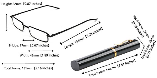 SOOLALA Lightweight Compact Reader Reading Glasses Reader w/ Pen Clip Tube Case (Black, 2.25)