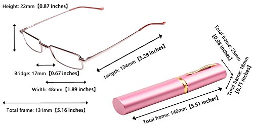 SOOLALA Lightweight Compact Reader Reading Glasses Reader w/ Pen Clip Tube Case (Light Pink, 1.75)