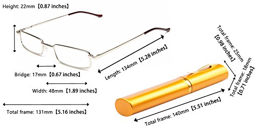 SOOLALA Lightweight Compact Reader Reading Glasses Reader w/ Pen Clip Tube Case (Gold, 2.25)