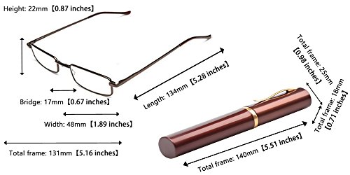 SOOLALA Lightweight Compact Reader Reading Glasses Reader w/ Pen Clip Tube Case (Brown, 2.25)