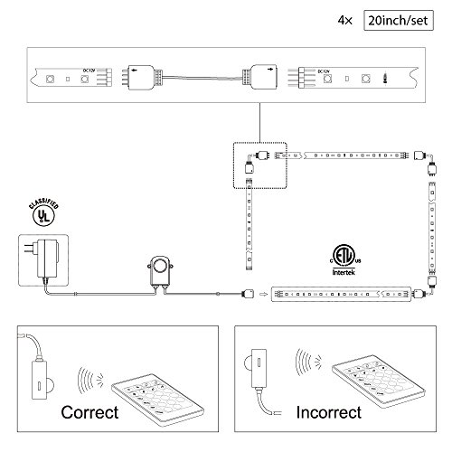 LED Multi-color TV Bias Lighting Backlight Strip for 32” to 60” Flat HDTV, ETL-listed, Home Theater Ambience Light Kit, UL adapter, Decorate Troffer, Gaming Computer, Musical Instrument, Bar Counter