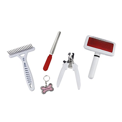 BXT 5 Pcs Stainless Steel Pet Grooming Set Safe Manicure Kit Shedding Tool of Pet Hair Comb, Pet Shedding Brush, Pet Nail Clipper, Pet Nail File&Pet Photo ID Tag for Small, Medium&Large Dogs Cats,Short&Long Hair, Pack of 5Pet Grooming set includes:1*Pet Hair Comb