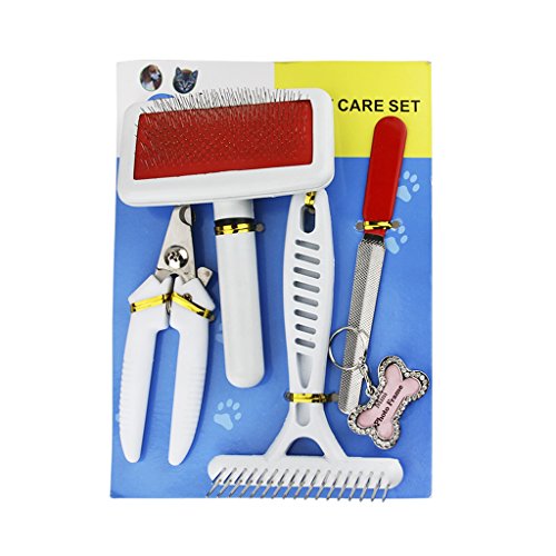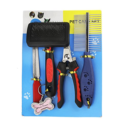 5 in 1 pack design. Pet Gromming Set includes: 1*Pet Hair Comb, 1*Pet Shedding Brush, 1*Pet Nail Clipper, 1*Pet Nail File&1*Pet Photo ID Tag. Fit for all size (small, medium and Large) dogs & cats with short, medium and long hair, grooms your pets easily and professionally. Don't hesitate to buy it, just come on!