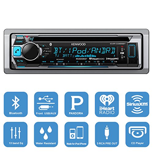 Package Includes: 1 Kenwood Stereo 2 Pair Of Spekaers 1 Antenna AM/FM radio with station presets_ CD player for standard audio CDs and also CDRs burned with MP3 or WMA files_ 200 watts peaker power (50 watts x 4 channels) Removable faceplate_ Front USB port for connecting iPod_ MP3 player or smart phones (recharg Compatible with devices enabled with Pandora_ I Heart Radio and other apps_ Front 3.5 mm aux audio input for patching in the audio from any external source_ Digital clock _ Variable color LCD display and illumination (13 segment 1.5 lines) _ Display Silver Speakers 5.25`` High Quality Polypropylene Cone_ Resin Treatment Surround_ Water-Resistant Construction_ 1`` High Temperature Kapton Voice Coil_ Full Range Dual cone to Extend Higher Frequency_ 15 Oz Magnet Structure_ 150 Watts Rated Peak Powe Enrock Dipole Marine Motorcycle Audio Hideaway Flexible Antenna (Black)