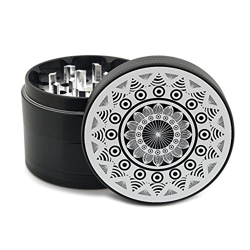 Mandala Herb Grinder 4 Piece Large Black Premium Metal Grinders 2.5" 63mm - Engraved Design - Gift Box