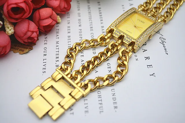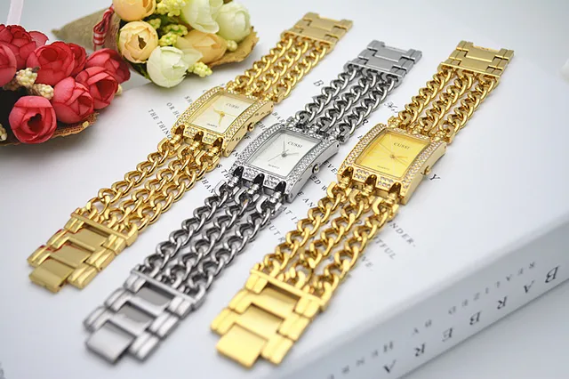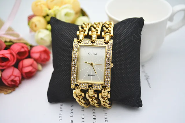 상품 내용 CUSSI 고급 여성 시계 골드 석영 손목 시계 여성 팔찌 시계 드레스 시계 Relogio Feminino Reloj Mujer 시계 선물