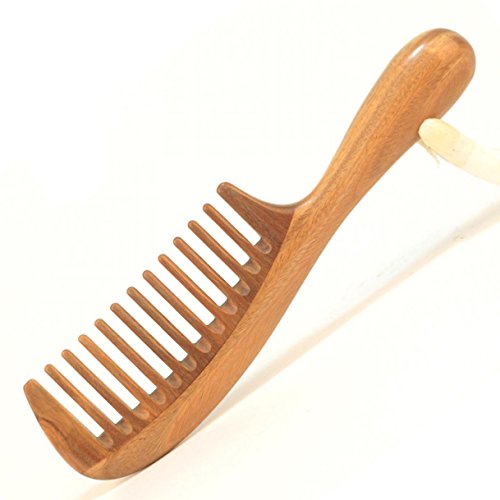 LOUISE MAELYS Natural Sandalwood Wooden Comb Wide Tooth Detangling Hair Comb for Thick Curly Hair