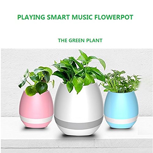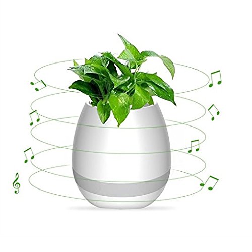 Music Flowerpot Smart Touch Music Plant Lamp Wireless Flower Pots with Night Light for Office Bedroom Living Room Home Decor (White)