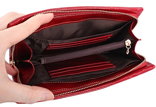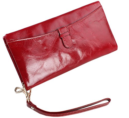 - Feature : Made of high quality cowhide leather, the oil was leather makes the purse more luxury. Come with light gold hardware and durable polyester lining. The wax paper makes the purse more luxury. / We use the oil wax leather for this wallet, oil wax cowhide is made of top layer leather, please check the product description, we will offer you a detailed briefing about oil wax cowhide. / Pockets: 6 Credit card slots, 1 window pocket, 4 bill pockets, 2 zip pockets. Exterior 1 rear zip. / One little zippered pocket inside the wallet can be used as coin change purse pouch. Easily hold your iphone 5s/6. / Size info: (L)7.5" x (W)3.7" x (H)0.8" in,weight is 0.28 pounds