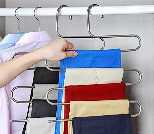 -. Title : Lebather 4-Pack 5 Layers Pants Hangers S-type Metal Stainless Steel Trousers Rack Multi-Functional Closet Hangers Space Saver Storage Rack for Clothes/ Towel/ Scarf / Trousers/ Tie