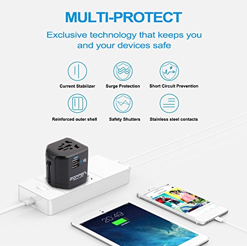 Certificated Safe and Reliable for worldwide travelers, Zoppen travel adapter A6 is approved by FCC, CE, RoHS, IEC60884-2 -5 (International Electrotechnical Commission norms), It is not suitable high power electrical appliances with Hair dryers, Curling irons/ Flattening and other high wattage device (Indoor use only)