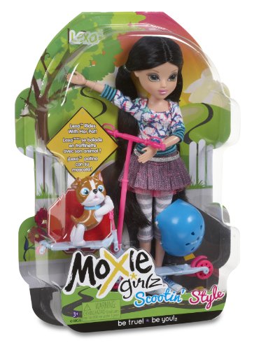 Moxie Girlz Scootin Style Doll - Lexa Moxie Girlz are all about individuality and confidence, and they show it in everything they do! * Each doll has their favorite skating accessory (skates, skateboard, and scooter) and their cute pet friend that rides along with them or on their very own. * Each doll also comes with her own safety helmetFeature