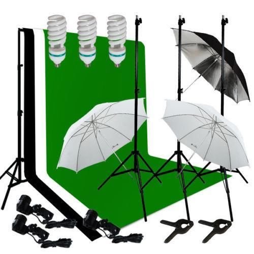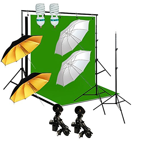 Ivationstudio Photography Lighting Kit Bundle with 10 Feet Background Support, Muslin Backdrops and Accessories - Green Black and White