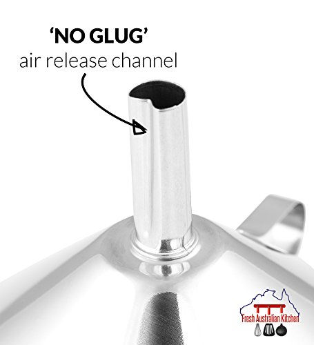 REDUCE MESS: Each Stem has a “No Glug” Air Release Channel which means that Liquids Won’t Splash and the Funnels will Sit Securely. The Narrow Stem makes these Funnels Perfect for Filling Small Bottles and Containers and keeps your Kitchen Counter Clean and Dry.