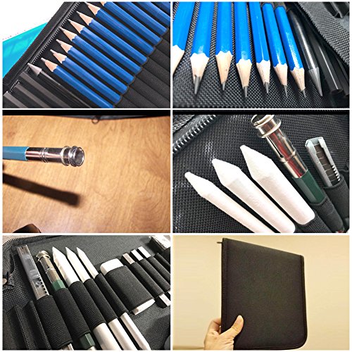 - ✔ Professional tool bag: Made of sturdy 'Black Nylon' it folds into the size of a sketchbook, and is ideal for carrying your pencil studio wherever you go.
