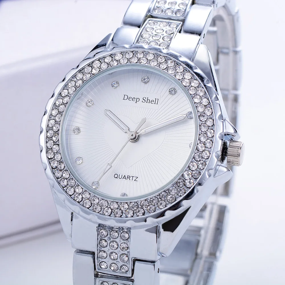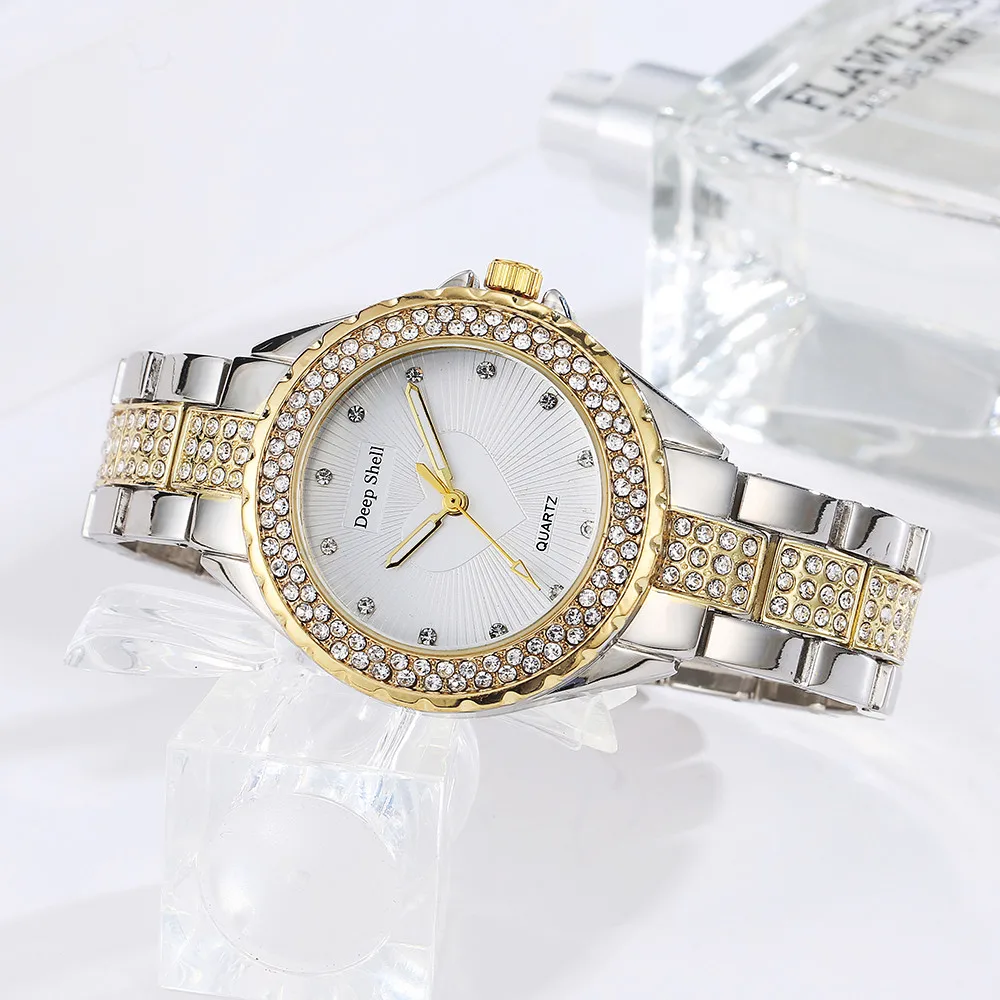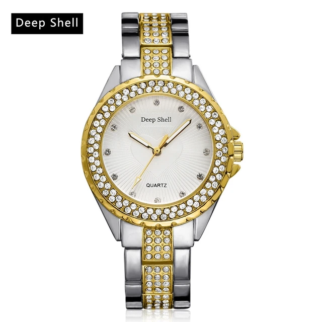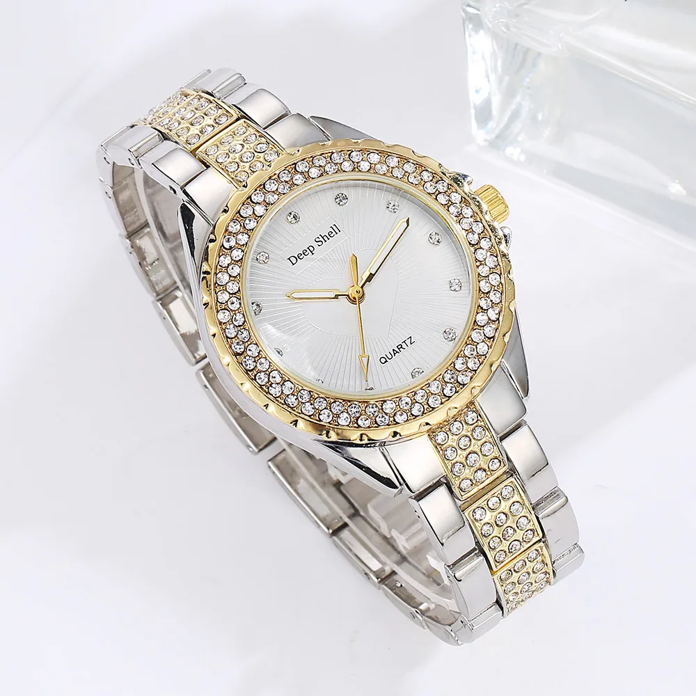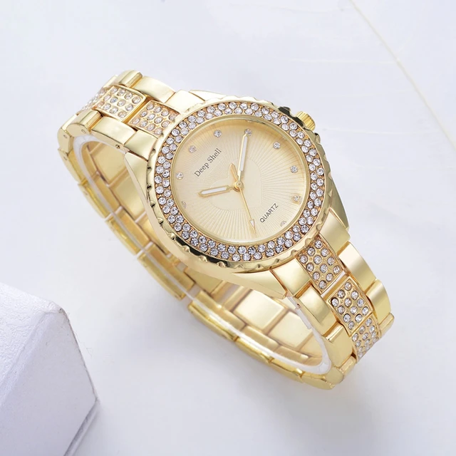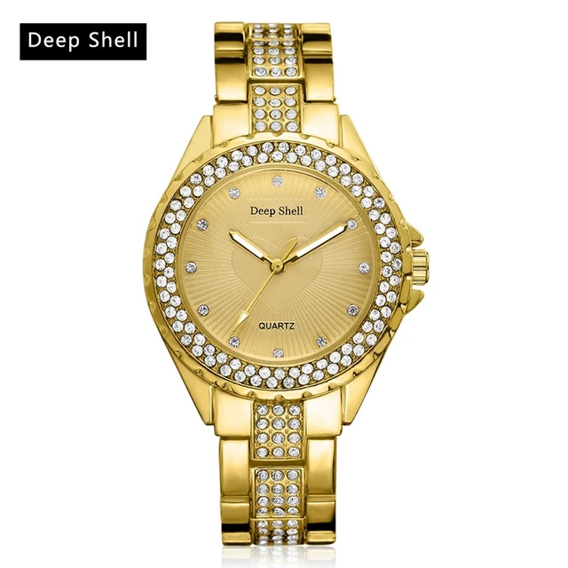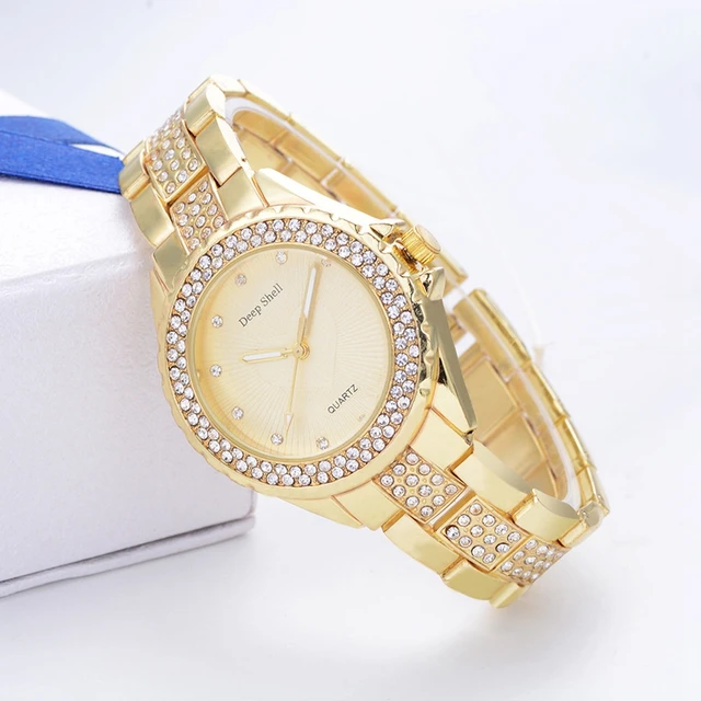 Deepshell 브랜드 골드 여성 팔찌 시계 숙녀 크리스탈 쿼츠 시계 여성 손목 시계 Relogio Masculino 수송선 # N08
