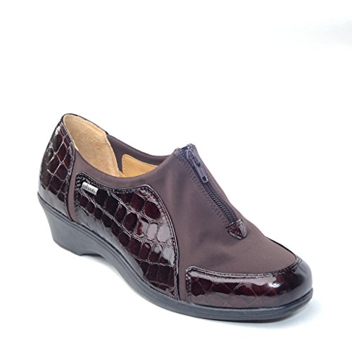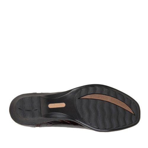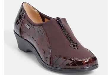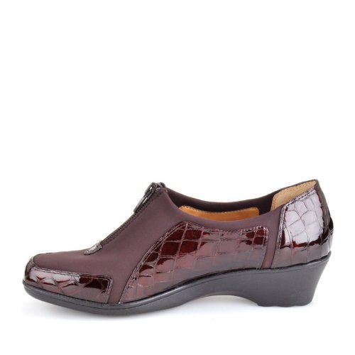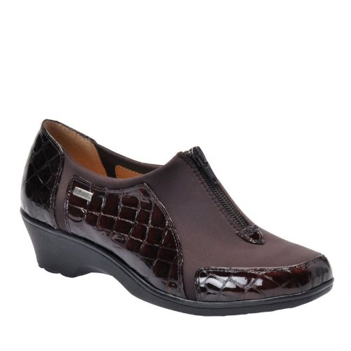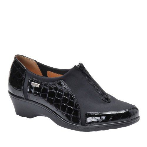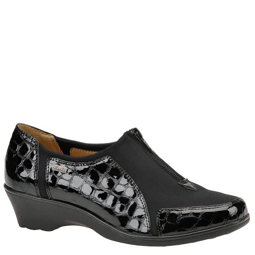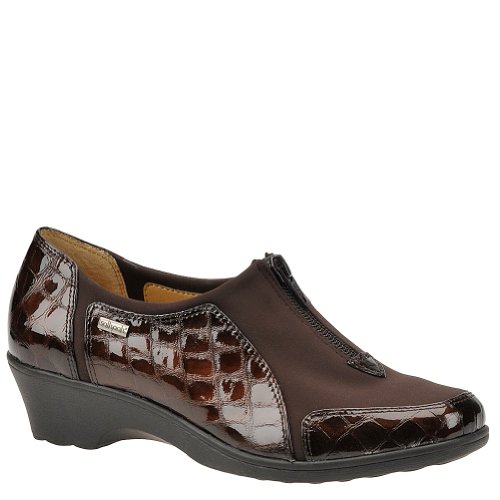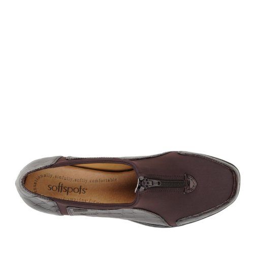 Heel Height: Approx. 1 1/2'' Tall. Upgrade your casual look with the Sparks slip-ons from Softspots. Croc embossed patent upper in a casual slip-on style with a round toe. Stretch vamp panel ensures a great fit. Zip-up front. Smooth lining, cushioning insole.