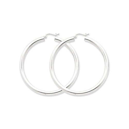 Bold and beautiful, our extra large hoop earrings rendered in sterling silver with rhodium plating feature a classic 4mm hollow tube design with a luminous polished finish and a snap-tight hinged post.Feature