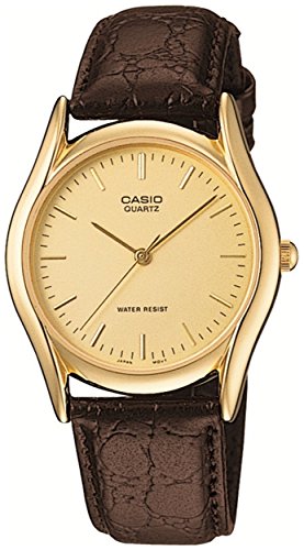 Brand, Seller, or Collection Name:Casio Model number:MTP-1094Q-9A (A771) Part Number:A771 (A771) Item Shape:Round Dial window material type:Mineral Display Type:Analog Clasp:Buckle Case material:Stainless steel Case diameter:30 millimeters Case Thickness:9 millimeters Band Material:patent leather Band length:Men's Standard Band width:20 millimeters Band Color:Brown Dial color:Gold Bezel material:Stainless steel Calendar:No Special features:Second hand Item weight:1.76 Ounces Movement:Japanese quartz
