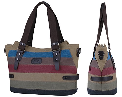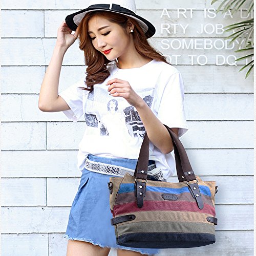 -. Title : COOFIT Canvas Handbags Striped Tote Bag Top Handle Shoulder Bag Hobo Cross Body Bag for Women