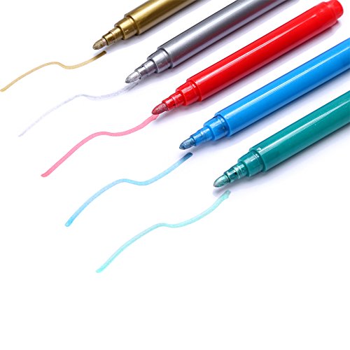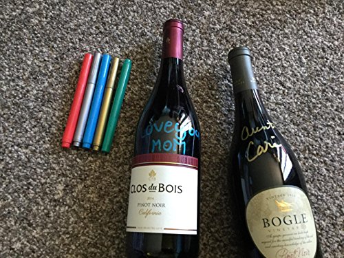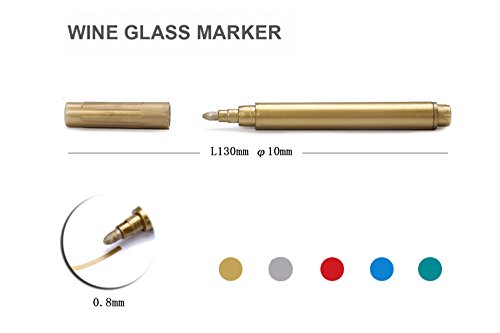 - NON-TOXIC INK, VIBRANT COLORS, EASY TO CLEAN: You don't have to worry about it leaking somehow into the glass and being harmful. The color goes on easily and washes off just as quickly. These wine markers write so boldly and smoothly and actually stay nicely on the glasses. Cleaning up is a breeze with a damp washcloth or soapy sponge. 5 Vibrant Colors (gold, silver, green, red, blue) is enough, you don't have to pruchase too many pens put aside and let them dry out without use.