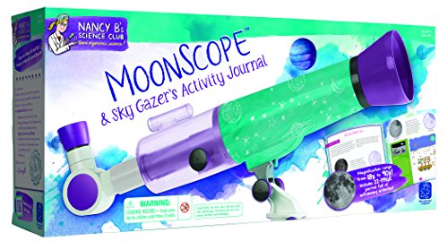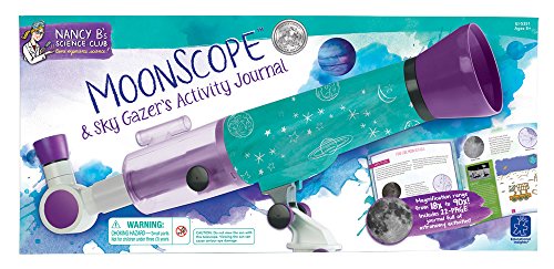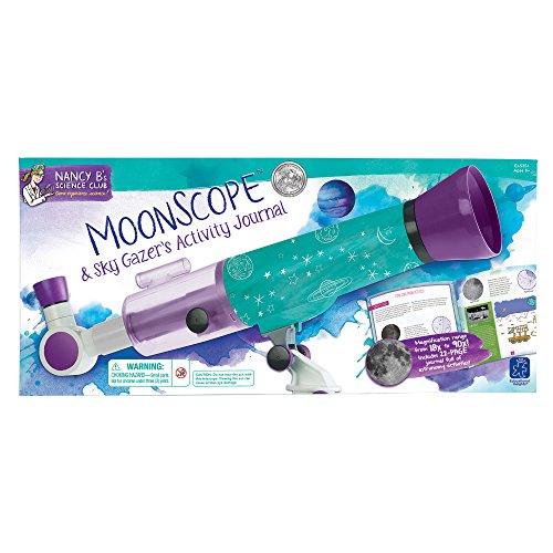 -. Feature : Take a tour of the nighttime sky, with visits to Saturn, Jupiter, and even the mountain ranges on the moon! / Follow the 22-page activity guide to get started on your stellar celestial adventure! / Encourages kids to pursue their natural love of science! / Includes MoonScope with 18x and 90x magnifications, 4 mm and 20 mm all-glass eyepieces, finder scope, moon filter, tripod, and 22-page journal. / Built-in red LED light on tripod requires 2 AAA batteries, not included. MoonScope itself does not require batteries. / Real-life journaling activities provide hands-on science experiences / Includes Moon Scope with 18x to 90x magnification, Moon Filter and tripod with built-in red LED / Twenty-page Sky-Gazers Journal includes stories plus tracking, writing, drawing