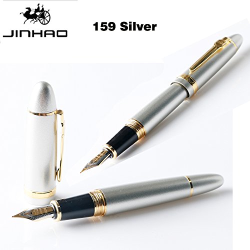 -. Title : JINHAO 159 Pens Silver and Golden Trim 18KGP Medium M Nib Smooth Writing Executive Gift Fountain pen