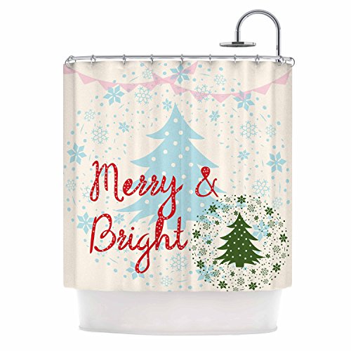 KESS InHouse Famenxt "Merry And Bright" Holiday Typography Shower Curtain, 69 by 70"