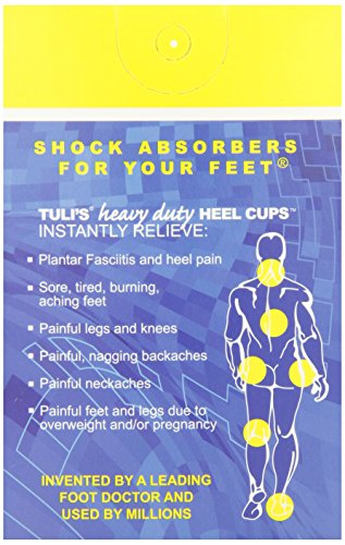 Tuli's Double-Ribbed Heavy Duty Heel Cups are the most advanced shock absorbing heel cups available today. The primary force of the heel strike is absorbed by the larger and higher waffle pattern while the lower and denser waffle pattern absorbs the "high pressure" and final force spike of heel strike. Perfect for sports activities.Feature