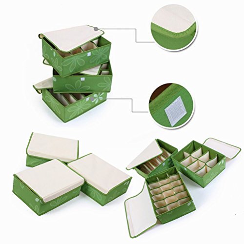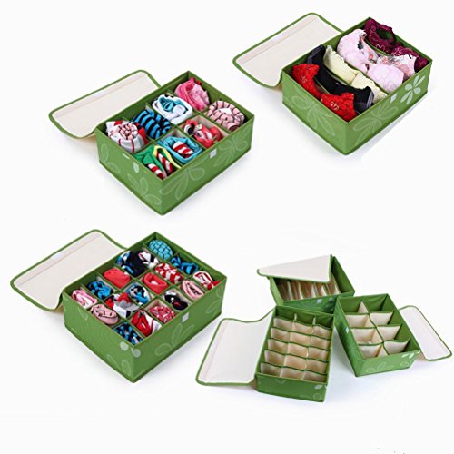 -. Title : Micy Drawer Dividers Closet Organizers Bra Underwear Storage Boxes 3 Set- Green