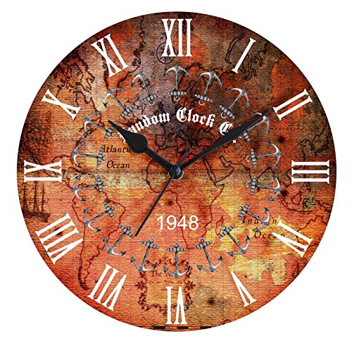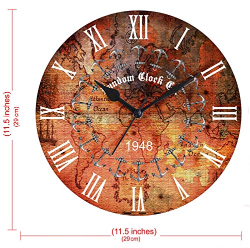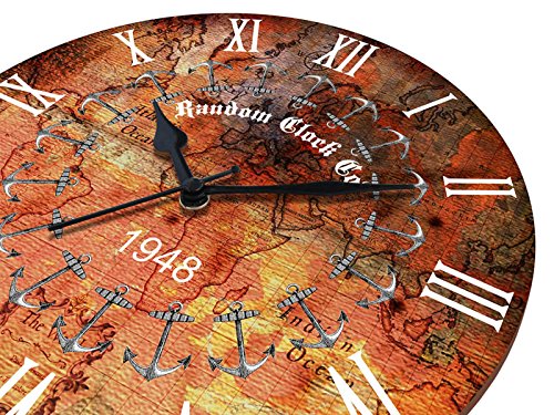 * Home Decorative Anchor Print Wooden Round Roman Numerals Quartz Rustic Wall Clock. * Color: Orange Yellow * Material: Wood. * Movement: Quartz * Size: Diameter - 29 Cm (Approx) * Sale For: 1 Set (Includes 1 Clock, 1 AA Battery, 1 Steel Screw, 1 Nylon Plug) * Brand: Random | Item Name: Rustic SPARKLING wooden | Item Code: RC-9026 * Weight: 1.1 Kg (Approx).