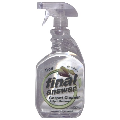 Studio : TECH Publisher : TECH Binding : Misc. Product Description Final Answer® Carpet Cleaner is the way to keep your carpets looking like new. Final Answer® Carpet Cleaner is designed to "lift" stains to the surface to easily be blotted away and leaves no residue to cause rapid resoiling - so carpets stay cleaner, longer. Compared to other "national brand" carpet cleaners, Final Answer® Carpet Cleaner is more versatile, safer, and easier to use. It can be used directly on your carpet or in your personal cleaning machine as your carpet shampoo (mix 2-4 oz per gallon). Final Answer® Carpet Cleaner cleans without enzymes so there is no waiting, you get instant results. If you have been looking for a carpet cleaner that will keep your carpets clean, is safe to use around kids and pets, - this is your Final Answer®! 0