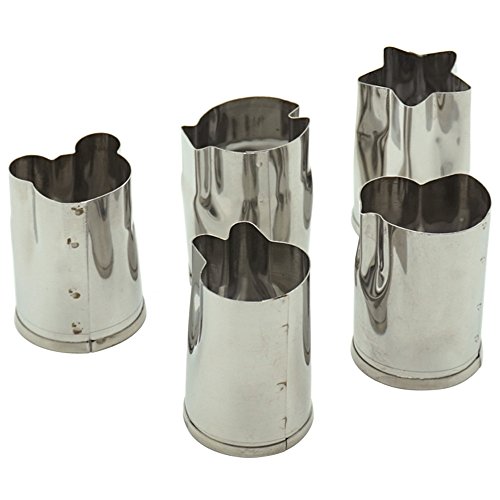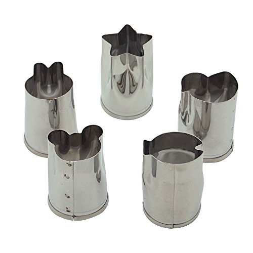 Package contains: 1 Set = 5 Piece Mini food cutters Star, Hello Kitty(Bear),Bunny Rabbit,Fish,Chick Size: 5 small cutters (Approx. 1 x 1.6 in/2.5 x 4 cm): ?Note:The cutters are very sharp. Please be careful when using and cleaning.