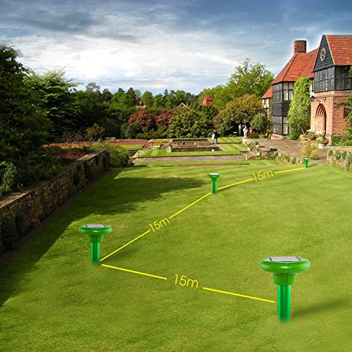 -. Feature : ★ HOW IT WORK: Emit a beep sonic of 400Hz when vibrate every 30 seconds. Moles, gophers, voles, rat mice and other rodents feel the sound and vibration highly irritating so flee from the protected area. / ★HUMANE & EASY to USE: No troublesome chemicals or nuisance pesticide, no traps, no dead animals. Dig a hole, inserted the items into the ground. Make sure at least 2 inch above the ground. / ★COVERAGE AREA:The effective area of this mole repeller is 625 square meters. To maximize the spread of the sonic and vibration, we strongly recommend an installation of every 15 meters or so. / ★ECONOMICAL ENERGY: The mole repeller sholud be placed properly to get maximum exposure of the sunlight, only in that way can the batteries be charged as fully as possible. / 1 YEAR MONEY BACK GUARANTEE: You are free to return and receive a full refund of your purchase.We have excellent customer service team