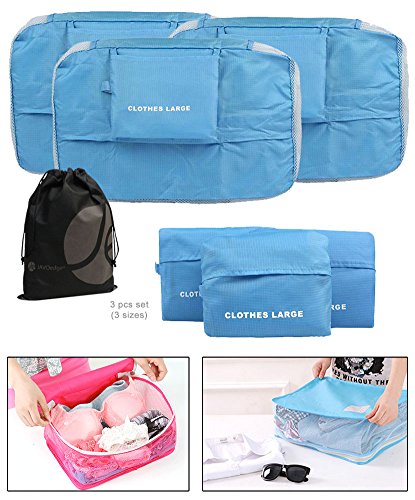 -. Title : JAVOedge Blue 3 Piece Bundle Nylon Travel Packing / Home Storage Organizer Cubes (Small, Medium, Large) with Bonus Bag