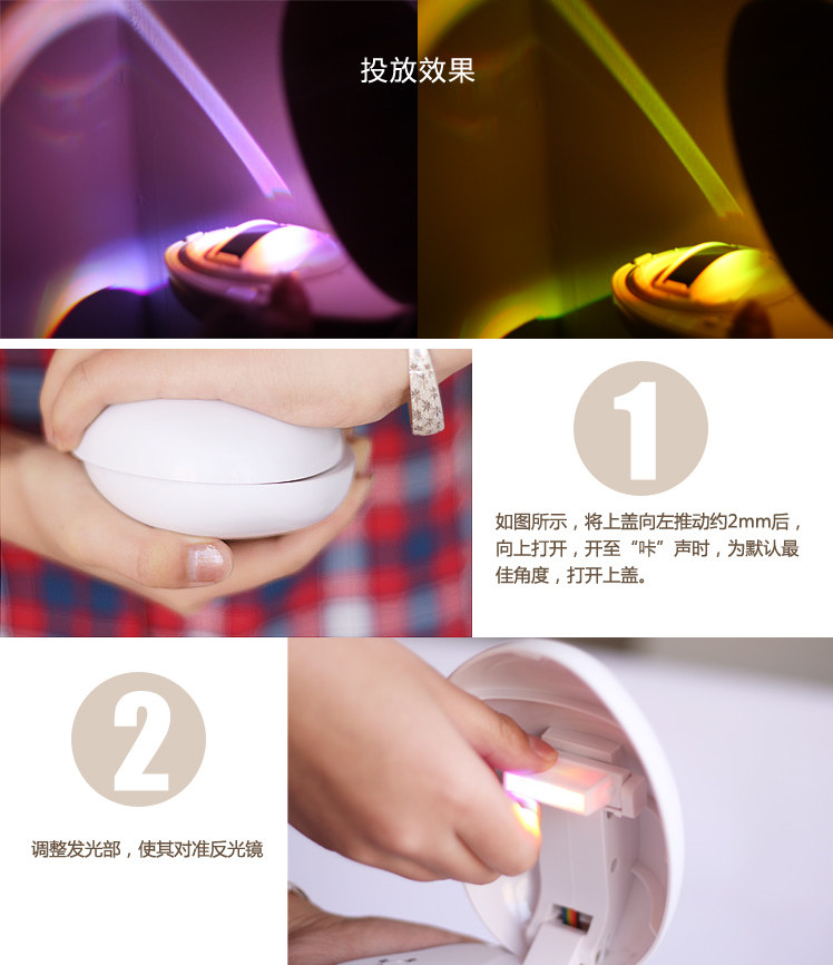 为了不影响使用效果,请使用前先把反光片上面的保护膜撕掉,谢谢!(特别说明;此款产品是投在墙壁上的,非立体投影)