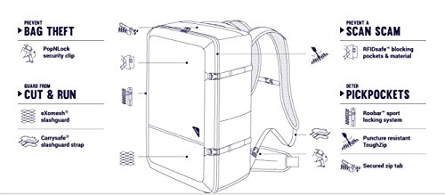 The Vibe 40 Anti-Theft 40L Weekender Backpack from Pacsafe has six anti-theft features built in, providing peace of mind and helping you move securely. With a wealth of organizational options, a 15-inch laptop compatible sleeve, padded adjustable shoulder straps that can be tucked away, sternum and waist belt, as well as a quick access pocket, the comfortable, roomy Vibe 40 is an ideal backpack for carrying all your belongings on adventures abroad, around town, or as a handy carry-on. The bag's fabric is embedded with eXomesh Slashguard, a lightweight flexible, stainless steel wire mesh that protects your gear from a quick slash-and-run theft. Flexible, lightweight stainless steel wire runs through the adjustable Carrysafe Slashguard shoulder straps to help prevent slashers from slicing through and running off with your gear. The bag includes a PopNLock security clip on the top of the right strap, as well as smart zippers that interlock and can be secured to the Roobar Sport locking system, which locks down the all zippers in one place, helping prevent pickpockets. The Vibe 40 weighs 45 ounces, and has a volume of 40 liters. Pacsafe is all about secure mobility. With a wide range of stylish adventure backpacks, everyday bags, women’s bags, camera bags, luggage, and travel accessories, Pacsafe lets you unpack the stress of protecting your gear, and instead, pack peace of mind. 0 |