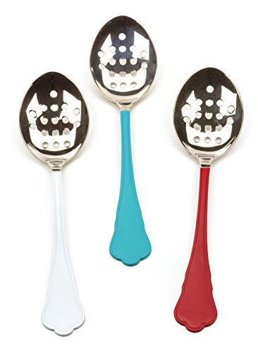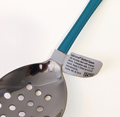 Studio : RSVP Publisher : RSVP Product Description Add a little color to your kitchen and table with our enamel handled spoons that are perfect for preparing or serving. Available in slotted or solid spoon styles made from 18/8 stainless steel with an 11-1/4-inch overall length. 0