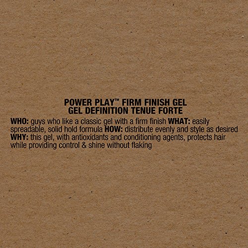 ReleaseDate : 2016-01-11 Studio : Tigi Publisher : Tigi Binding : Health and Beauty Product Description Bed head B for men power play firm finish gel is an alcohol-free, non-flaking, solid hold formula. Conditioning agents and antioxidants protect your hair while providing control and shine. This product is great for guys who like a classic gel with a firm hold. 0