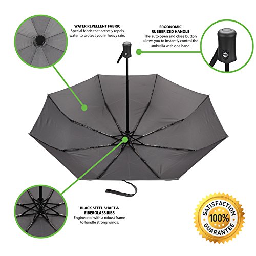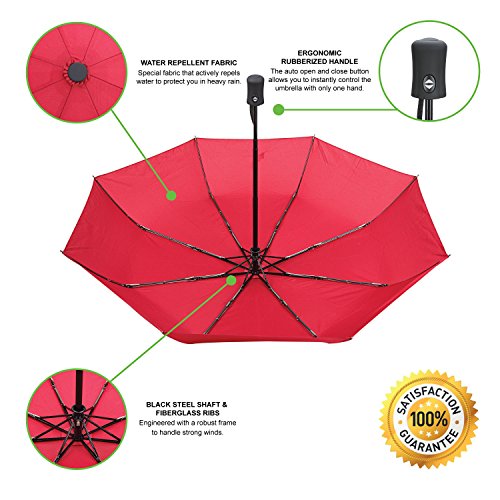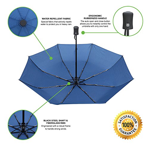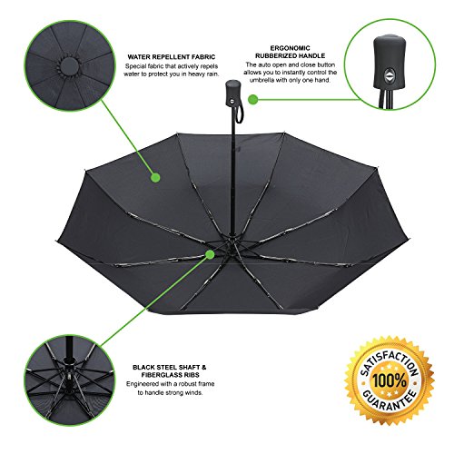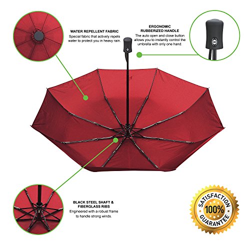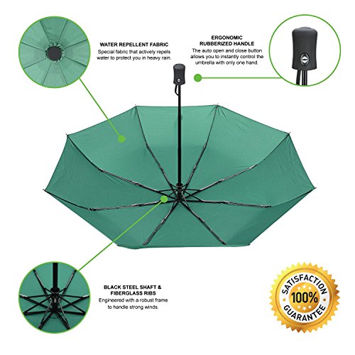 With the auto open and close button the umbrella can be opened easily with one hand and then the canopy quickly collapsed when needed.