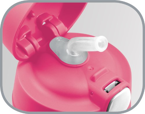 - Feature : THERMOS vacuum insulation technology for maximum cold temperature retention / Durable stainless steel interior and exterior; made from BPA-free materials / Hygienic push button lid with pop-up straw / Keeps contents cold for 12 hours / 12 oz capacity