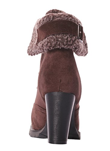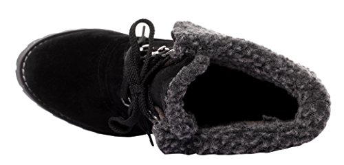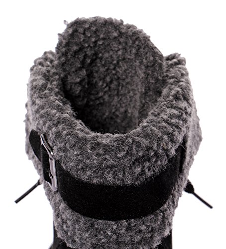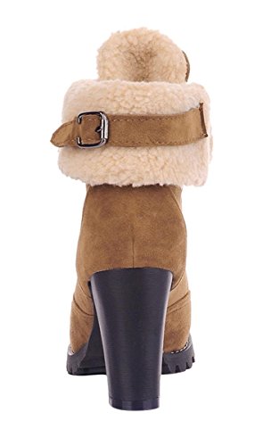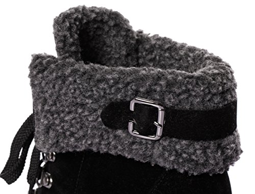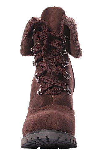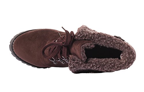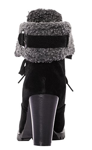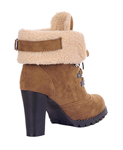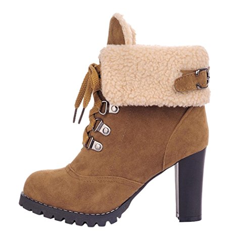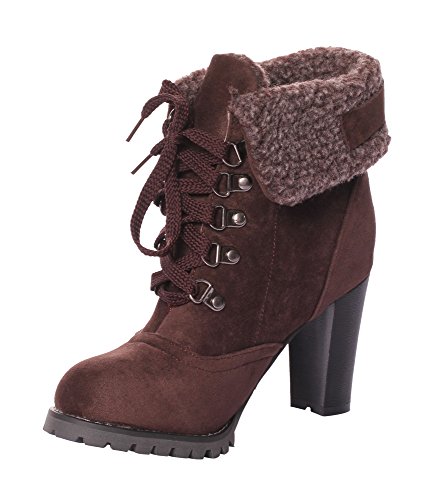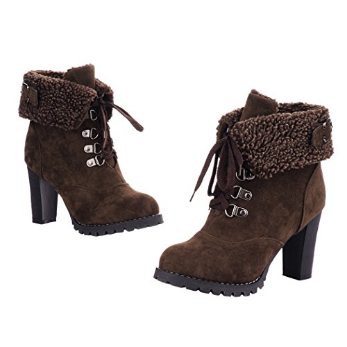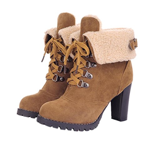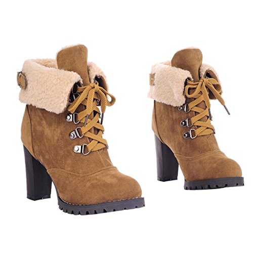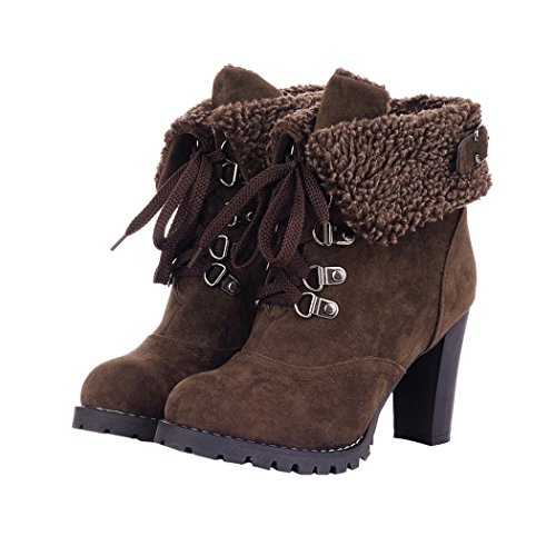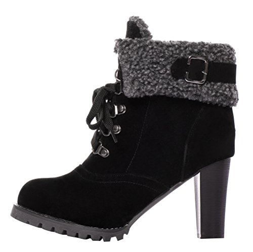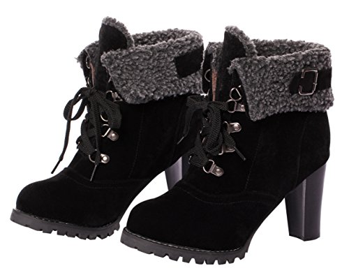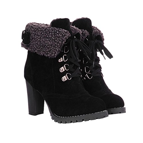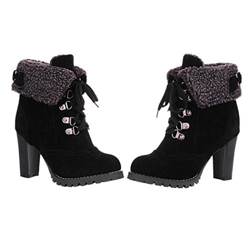 CAIHEE Cyber Monday Women Winter Fashion Booties Warm Fur Chunky High Heel Lace Up Martin Boots