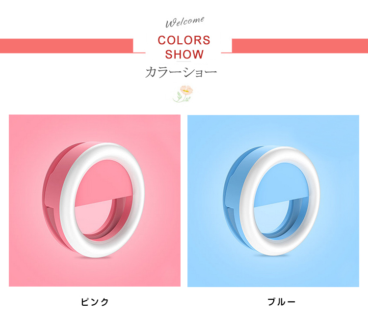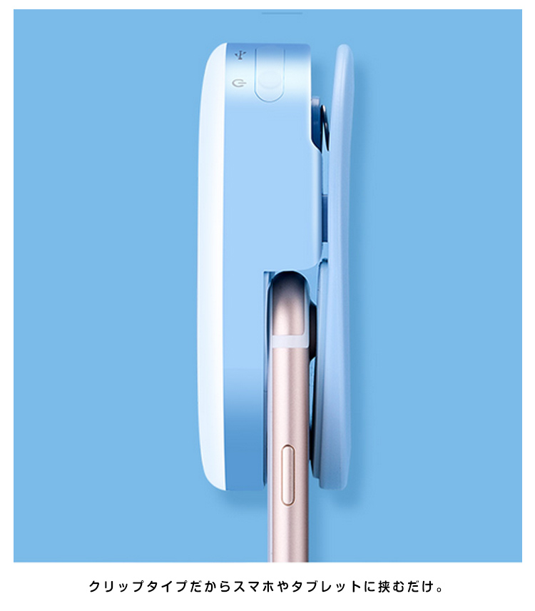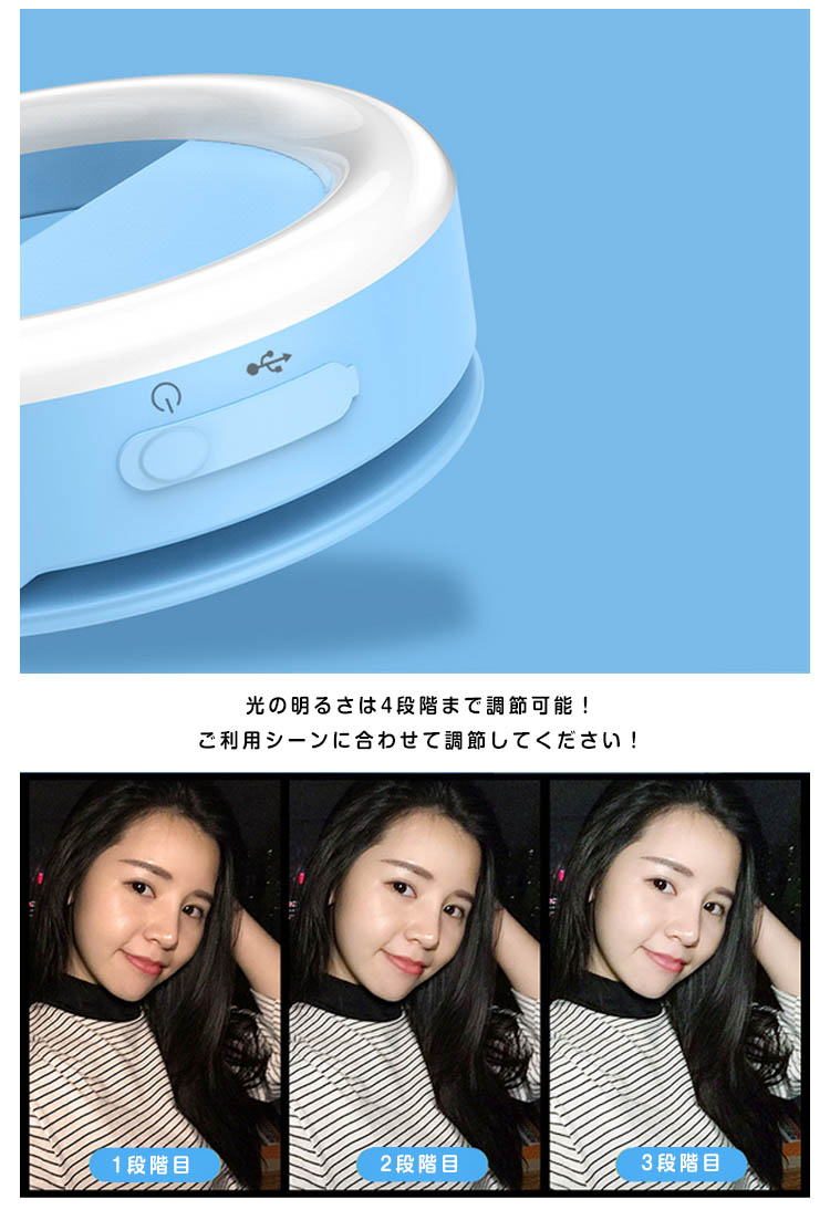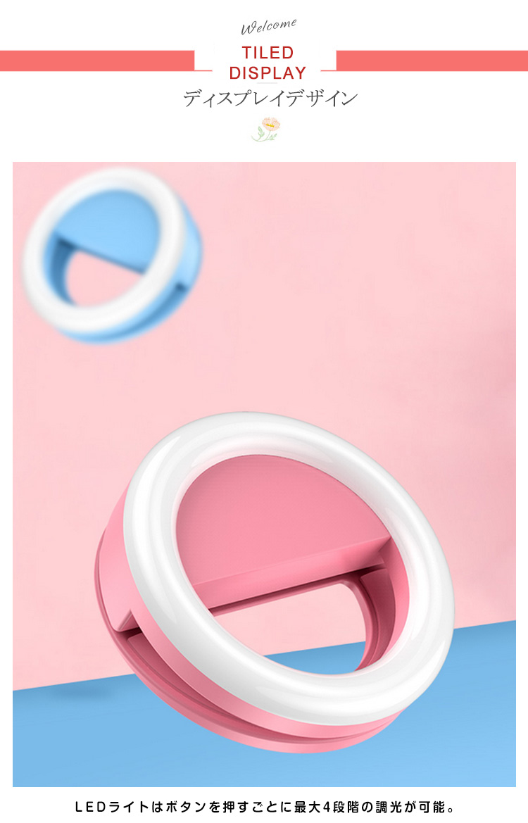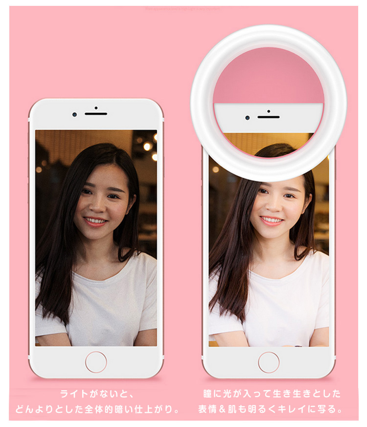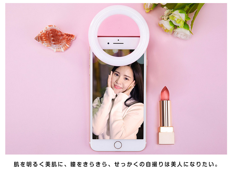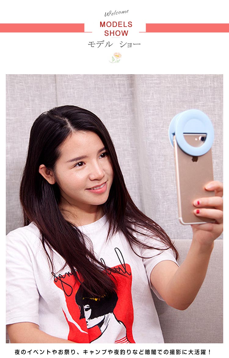 | スマホやタブレットに挟むだけであなたの表情を明るく照らす、とってもキュートな自撮りライト!夜のイベントやお祭り、キャンプや夜釣りなど暗闇での撮影に大活躍!LEDライトはボタンを押すごとに最大4段階の調光が可能。充電式なのでスマートフォンに接続せずに単体でも使用する事ができます。 | |