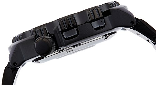 -. Feature : Solar-powered watch in black-tone stainless steel with orange degrade dial, date window, and Lumibrite hands/triangle hour markers / 42.5 mm stainless steel case and hardlex dial window / Japanese automatic movement with analog display / Stainless steel bracelet with fold-over clasp closure / Water resistant to 200 m (660 ft)