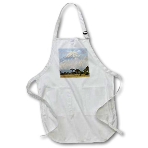 3dRose apr_80784_1 Africas Mount Kilimanjaro-Full Length Apron with Pockets, 22 by 30-Inch, White