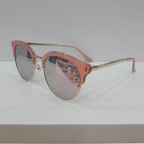 룩옵티컬 전용 하금 미러 선글라스입니다. 핑크캡에 골드프레임으로 착용시 여성분들이 많이 선호합니다. 렌즈는 핑크미러입니다.