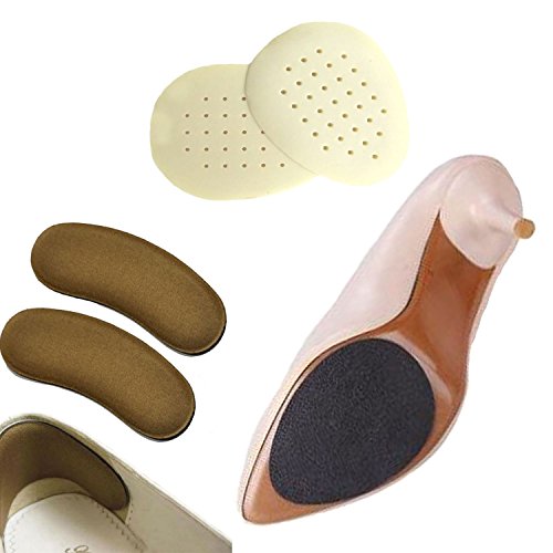 Askana Set of 2 pairs Anti-Slip Shoe Mat Sole Protector, 2 Pairs Silicone Toe Pads and 2 Pairs Heel Pads
