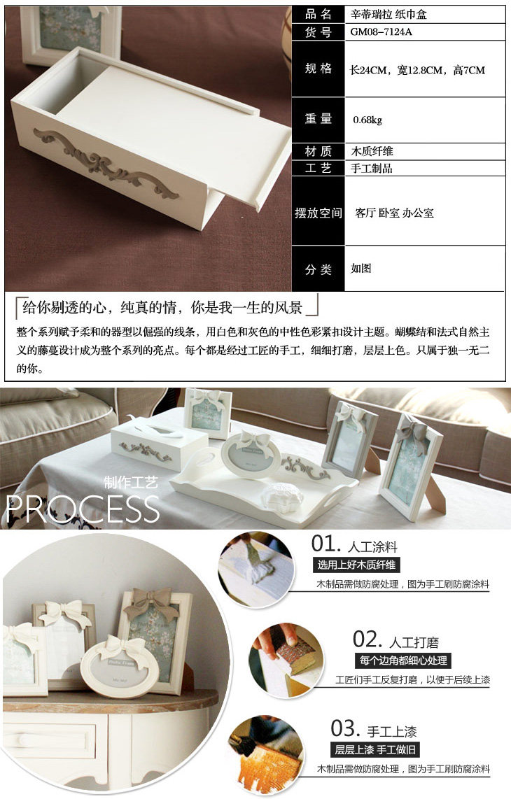 家居 饰品摆件 纸巾盒创意欧式抽纸盒辛德瑞拉木质纸巾盒