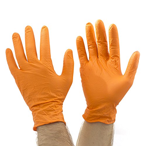 Diamond Grip - Heavy Duty, Orange, Nitrile Gloves, 8mil, Non Sterile, Powder Free, Textured, Industrial, 100 gloves per convenient dispenser (Large)