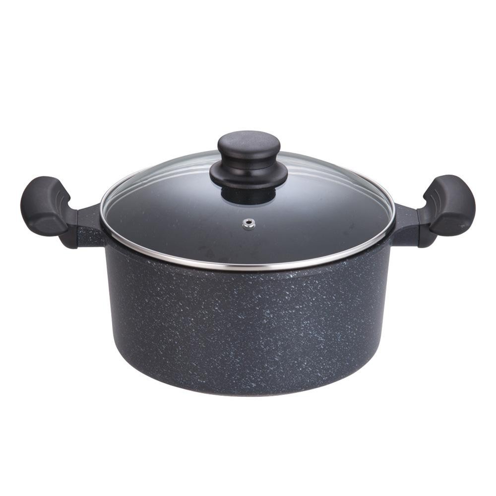 アルミキャスト製で内面にテフロンマーブルコート、外面に耐熱シリコン塗装を施しているので、キズに強く、内側も外側もお手入れが簡単。 |